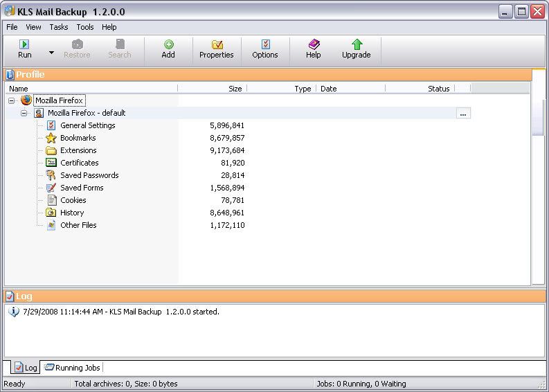 KLS Mail Backup is an easy to use backup program that allows you to back up and restore your Windows Mail, Outlook Express, Mozilla Thunderbird, Firefox profile files. The backup files are stored compressed in standard Zip files.