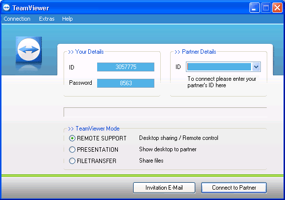To connect to another computer just run TeamViewer on both machines without the need of an installation procedure. With the first start automatic partner IDs are generated on both computers. Just enter your partner´s ID into TeamViewer and the connection is established immediately. With many thousand users worldwide TeamViewer is a standard tool to give support and assistance to people in remote locations.