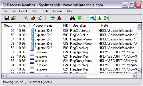 Process Monitor´s user interface and options are similar to those of Filemon and Regmon, but it was written from the ground up and includes numerous significant enhancements, such as: