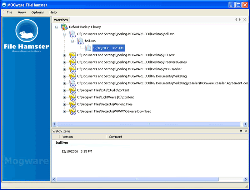 FileHamster is a version tracking application focused on meeting the needs of Content Creators .FileHamster provides real-time backup and archiving of your files while you work. It enables you to monitor specific files on your hard drive and automatically create incremental backups whenever those files are modified. It also enables you to store Note about the changes that have been made, allowing you to quickly locate a specific revision or provide a detailed Account of the work you´ve done on a project. Free plugins that add great functionality are also available at the author´s site.