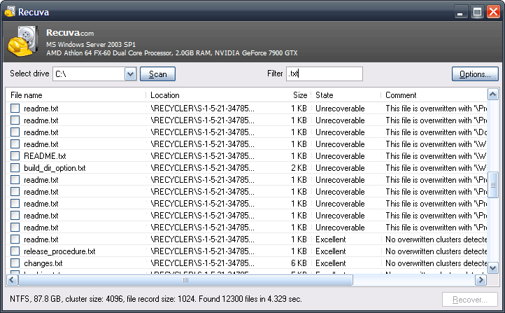 Recuva (pronounced "recover") is a freeware Windows utility to restore files that have been accidentally deleted from your computer. This includes files emptied from the Recycle bin as well as images and other files that have been deleted by user error from digital camera memory cards or MP3 players. It will even bring back files that have been deleted by bugs, crashes and viruses!