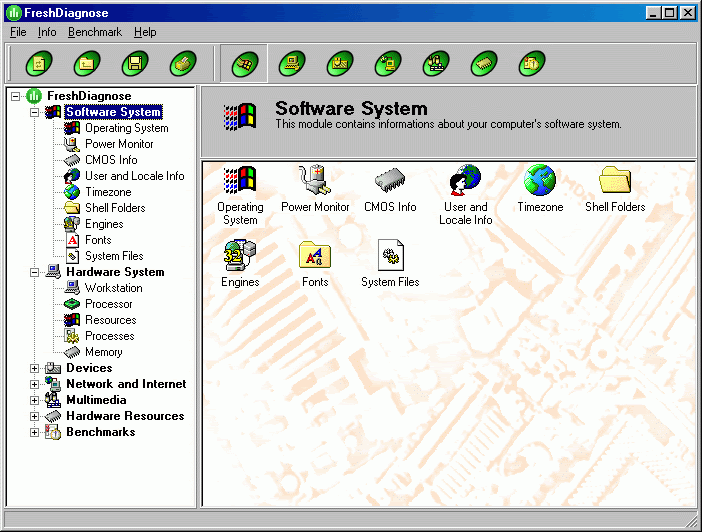 network information. System Benchmarks: Testing system performance, such as processor, hard disk, multimedia, memory and compare it with other systems.