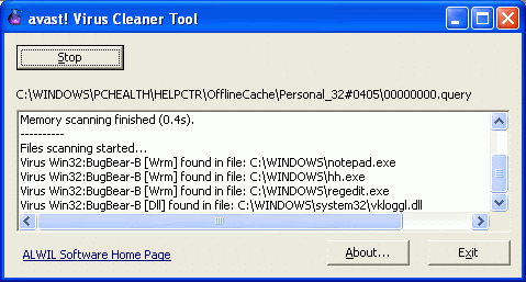 Many worms - when activated - create additional working files on your hard disk. Even though these files alone are harmless, they are useless and they should not be there. When avast! Virus Cleaner detects and removes a known worm from your computer, its working/temporary files are removed as well. The same applies for worm-specific registry entries etc. avast! Virus Cleaner can also deactivate the virus present in memory. There is no need to start the tool from a Safe Mode - just start it and it will take care of the rest!