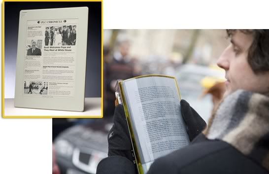Later today, the logic of the new plastic emails - boasted newspaper readers (name, Tentative) for the first time. Black and white, electronic ink device features a wireless connection to download the content, room enough to store " hundreds of pages of the newspapers , books, and documents," and more than twice the size of the lighting display during the tribulations just above half ugly.